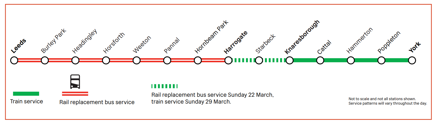 - 29 March - Rail replacement buses will run between Leeds and Harrogate