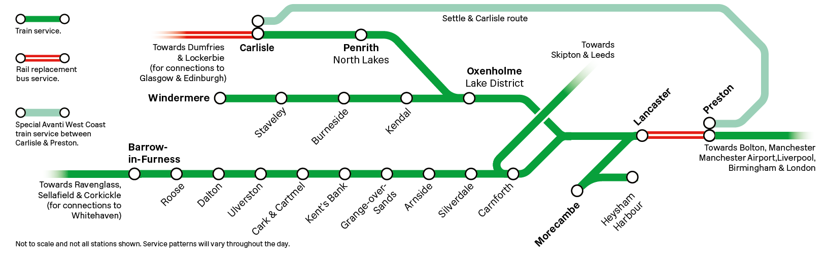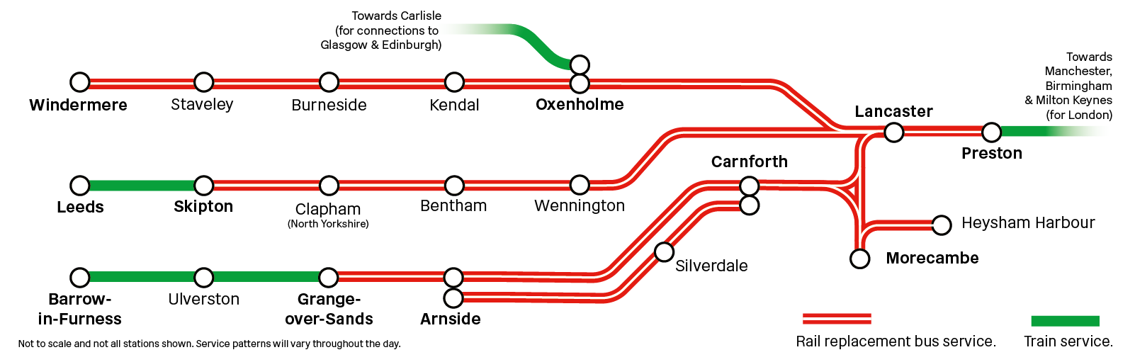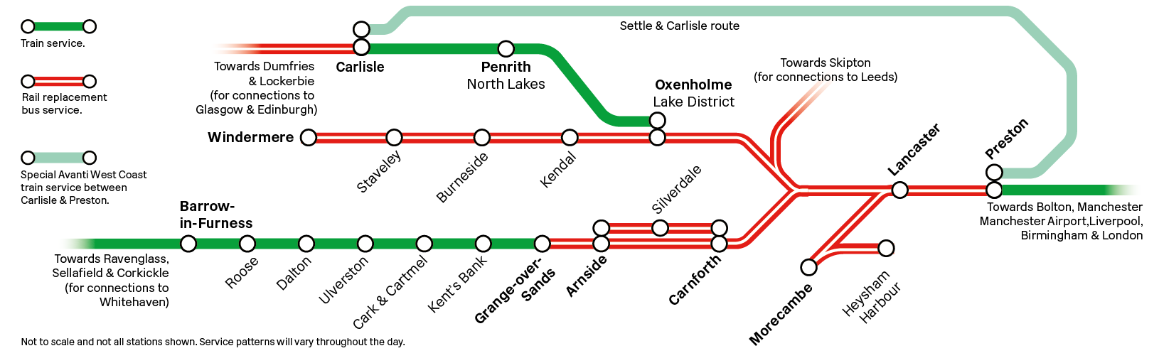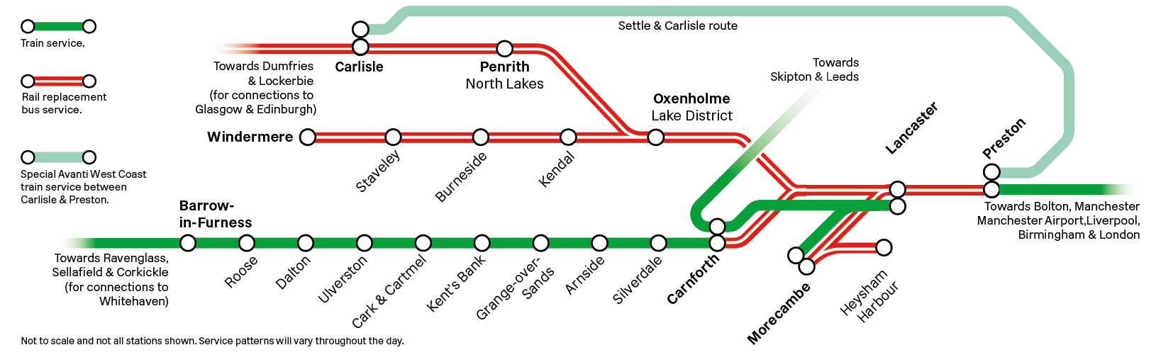 Due to planned improvement works, services between Preston/ Lancaster and Morecambe/ Windermere/ Barrow-in-Furness will be affected between Saturday 11 and Sunday 19 April.