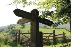 When the gate of the house comes into view ahead, go through the gate to your left – remembering to always leave all gates as you found them. The wooden sign shows you the way to Mam Tor – along the footpath on the right. Go through the next gate and follow the path.