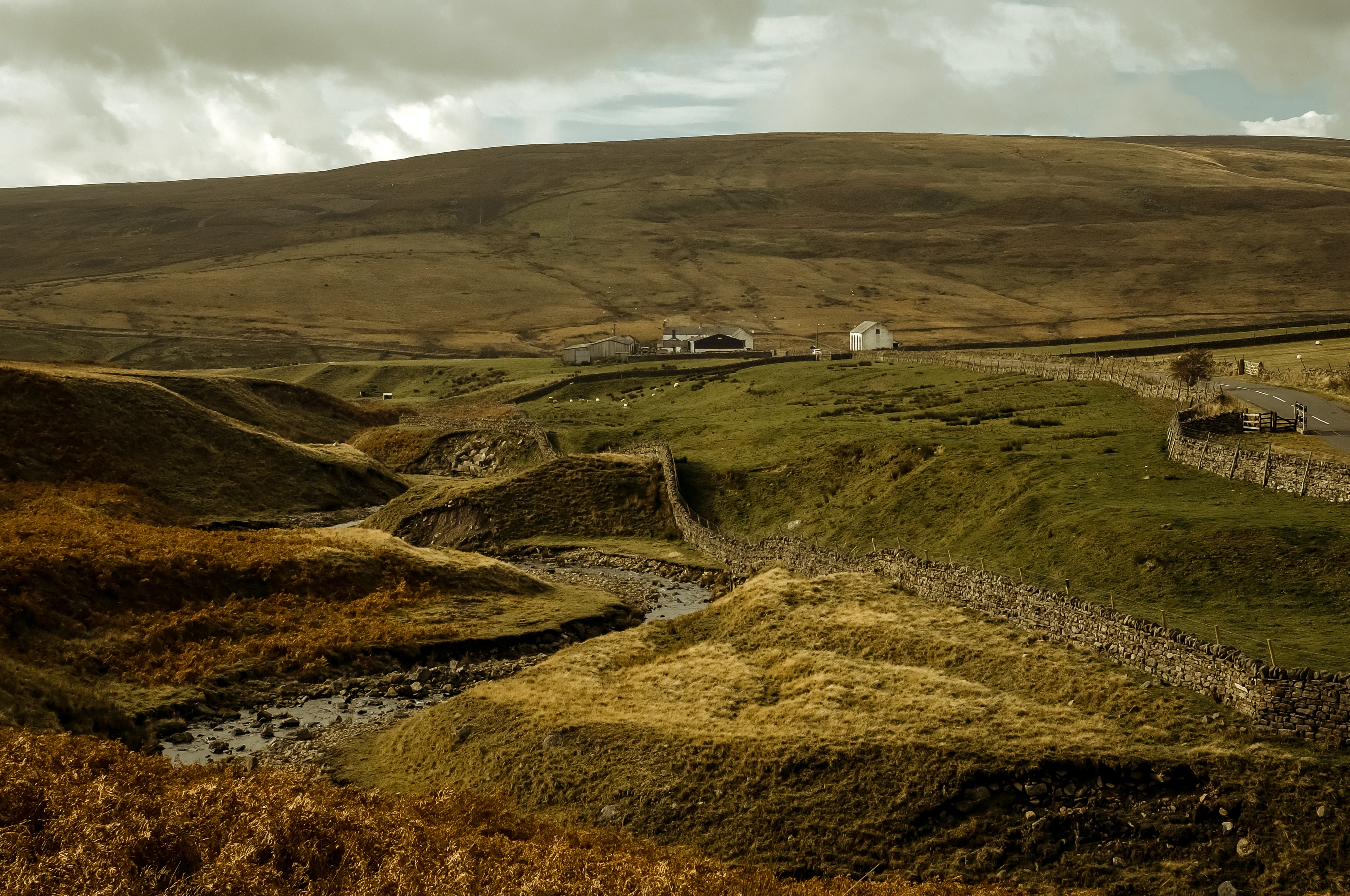 Continue walking along the path until you reach the main road – the B6255 Low Sleights Road – again.