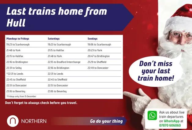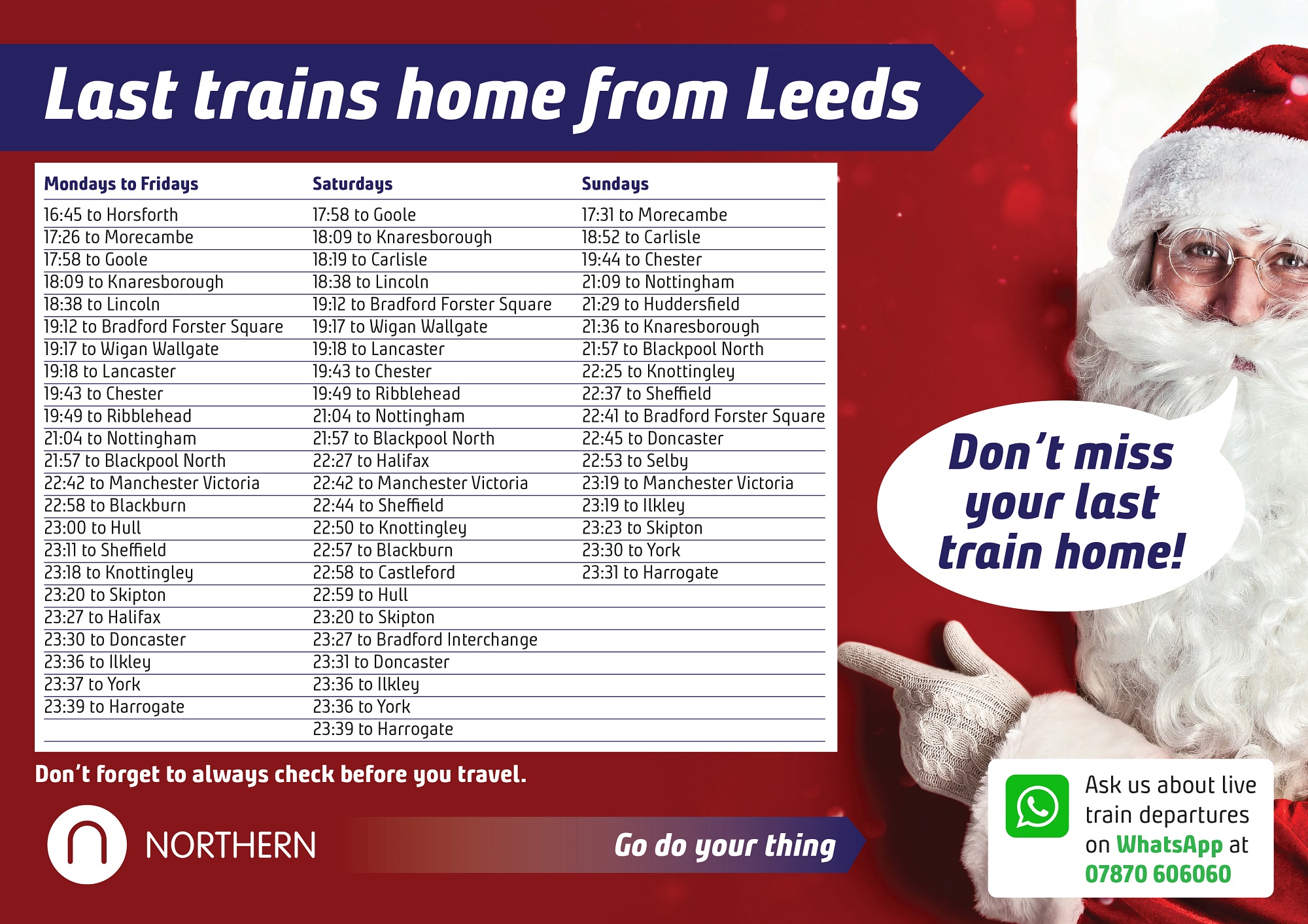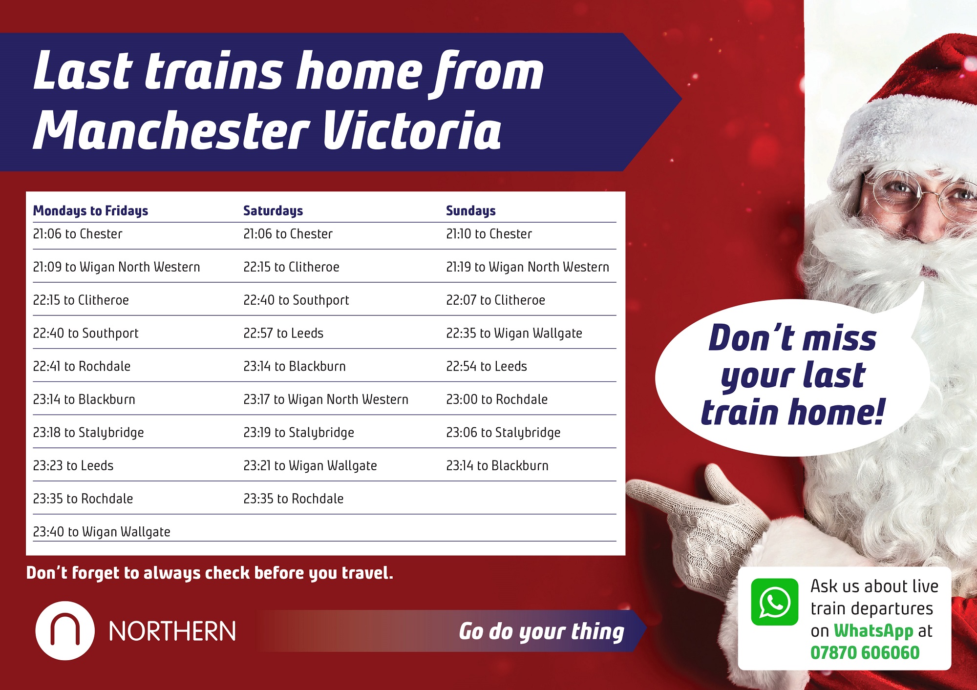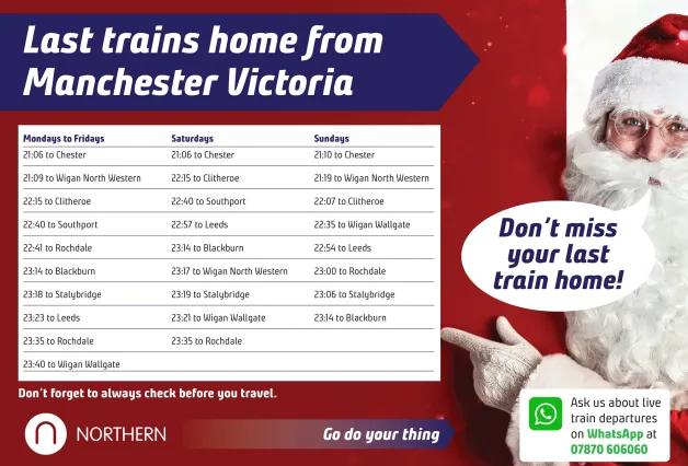 One for the Christmas party Whatsapp group: Northern shares quick-reference guides to its ‘last trains home’ from stations across its network