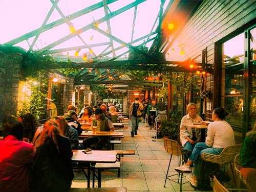 Once you’ve grabbed food and drinks head out to the rooftop bar to soak up the sunshine with friends. A super short 3-minute walk from Manchester Oxford Road station, you can even enjoy watching the trains go past from YES.