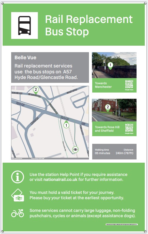 Pick Up at the bus stop on Hyde Road (station side) towards Manchester. Pick up at the bus stop on Glencastle Road (opposite station side) towards Marple/Sheffield.